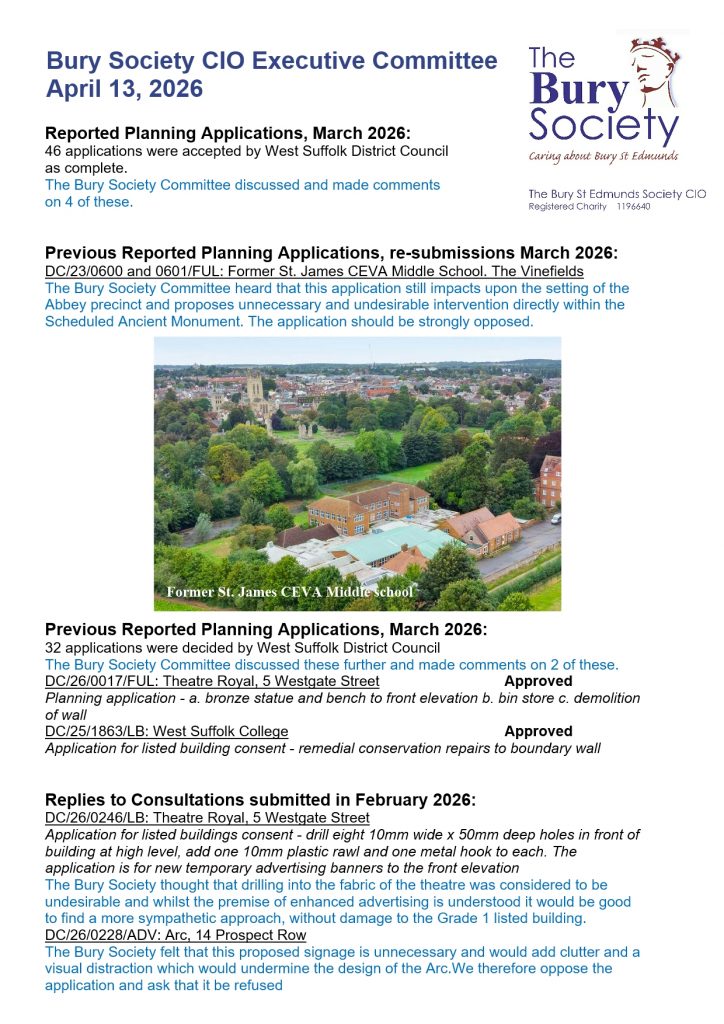 The Society responded to several applications in October and November and these are summarised here. The Society also wrote...
